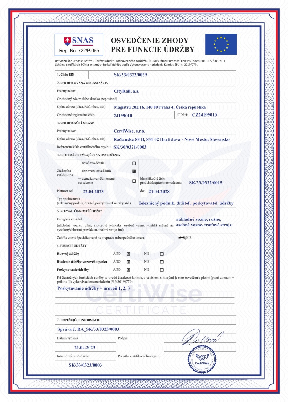 Vítejte na stránkách společnosti CityRail, a.s., poskytovatele železniční nákladní a osobní dopravy v České a Slovenské republice. Nabízíme širokou škálu služeb včetně přepravy osob, nákladní dopravy, ECM (údržba vozidel) a provozu vleček. Naše moderní flotila a profesionální personál jsou připraveni zajistit bezpečnou a komfortní přepravu pro všechny naše zákazníky. Připojte se k tisícům spokojených zákazníků, kteří si vybrali CityRail, a.s. jako svého spolehlivého partnera na cestách.